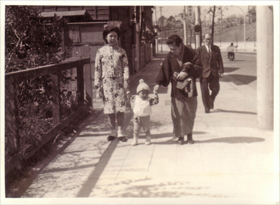 1965年(昭和40年)、1歳のオレと母、祖母。"捕まった宇宙人"ではない(苦笑)。東京オリンピック開催から1年。この写真の右手は代々木公園、左手は生家のあった遊歩道、つまり宇田川遊歩道である |