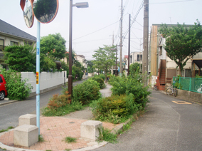 途中、グリーンベルト状になる一帯は周りの住宅そのものが比較的新しく、暗渠の両岸には車が通れる程度に広い道が作られていた